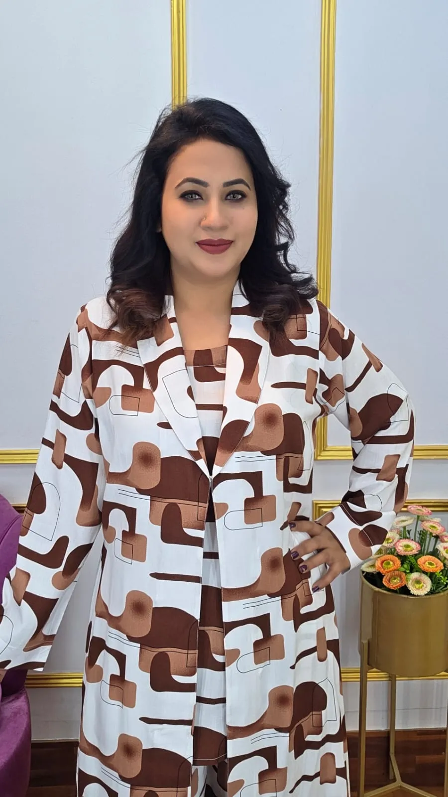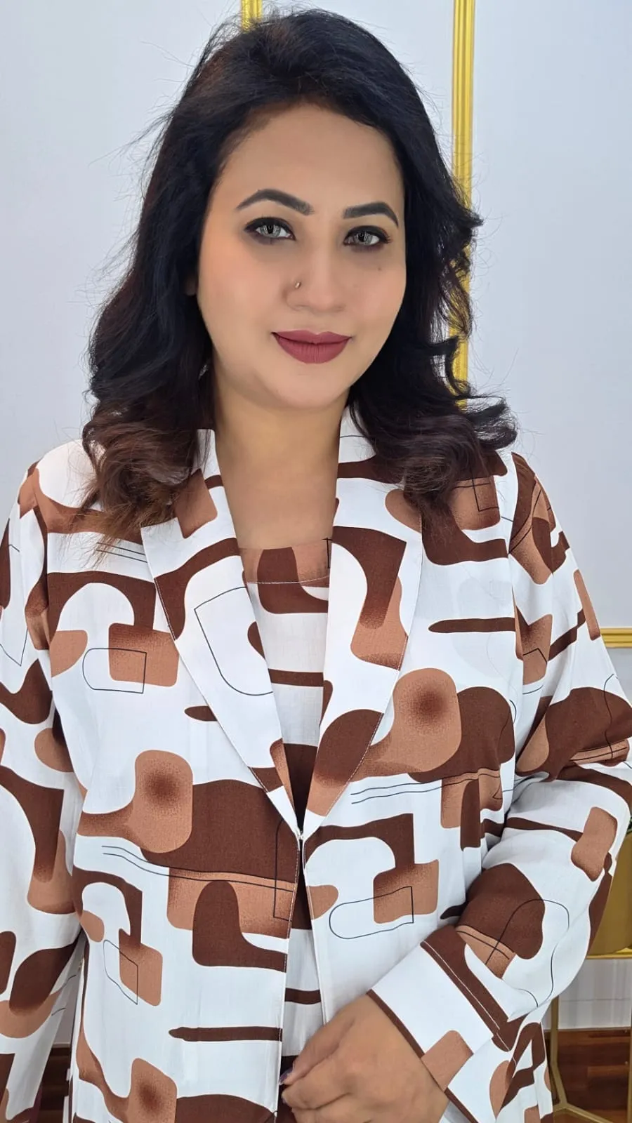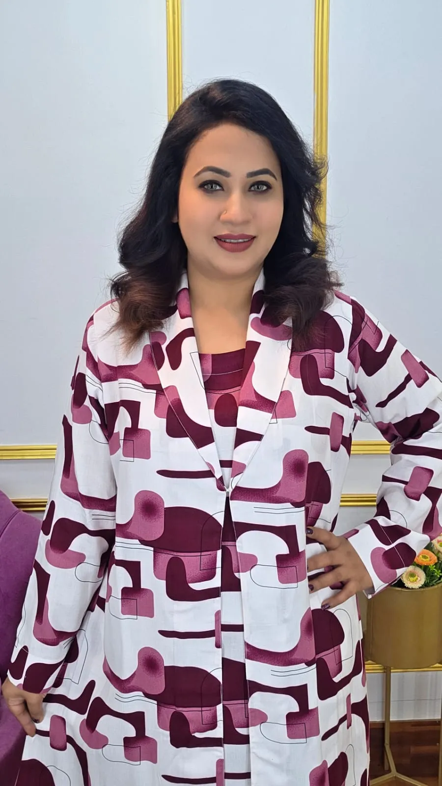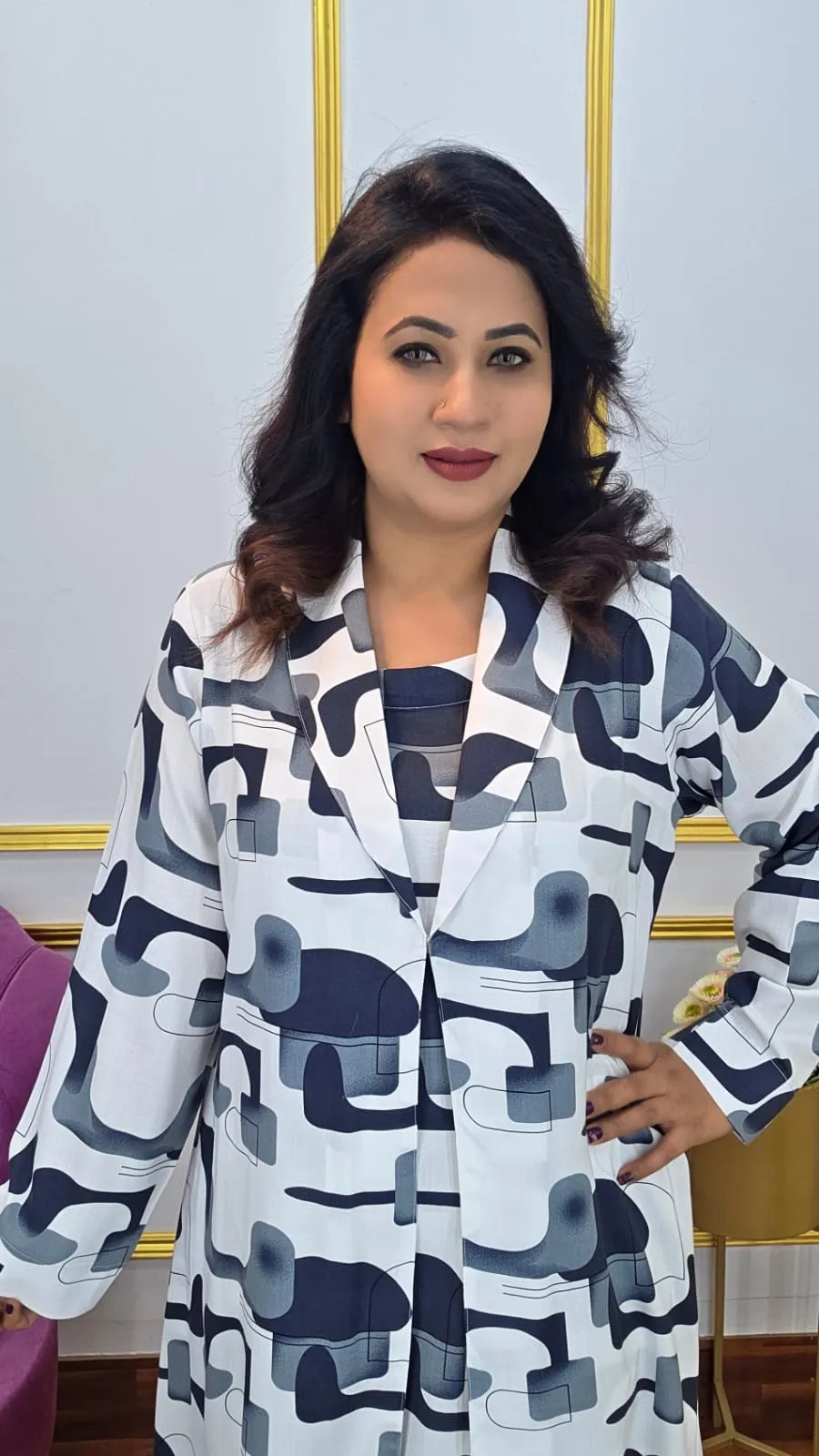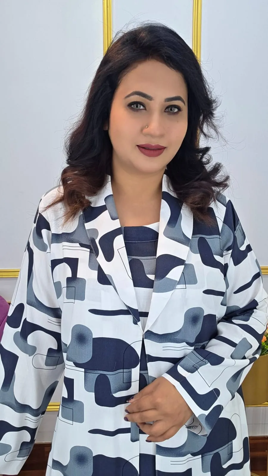 The blazer features a classic blazer neck, double-part design, and full sleeves, creating a structured yet fashionable silhouette. Available in a wide size range to ensure a confident and comfortable fit for every body type.