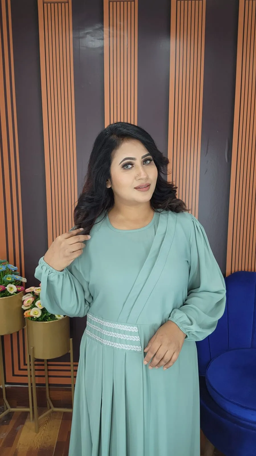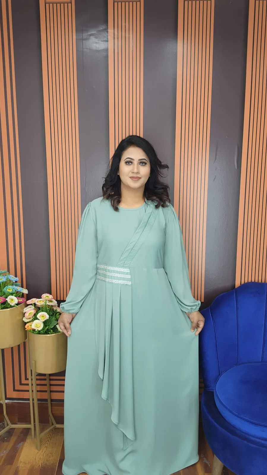 This stunning elegant long hijabi gown, crafted from premium Dubai Cherry fabric for a luxurious feel and graceful drape. Designed specifically for hijabi women, this gown combines modest coverage with contemporary elegance, making it perfect for various occasions from daily wear to special events.