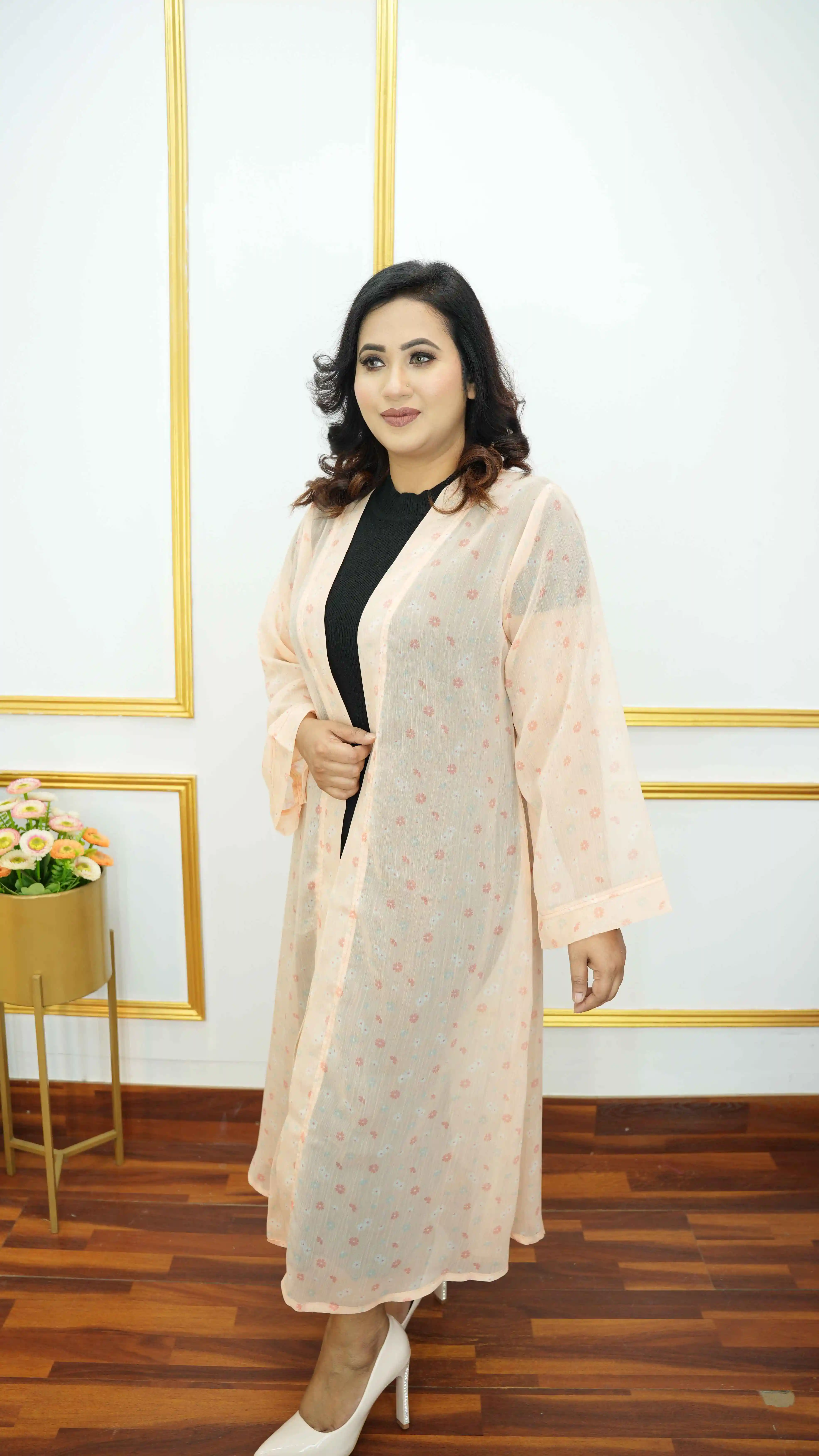 Add a touch of elegance to any outfit with this beautiful long shrug, crafted from luxurious georgette fabric. Featuring delicate small flower prints, this versatile layering piece is the perfect addition to elevate your everyday and special occasion wardrobe.