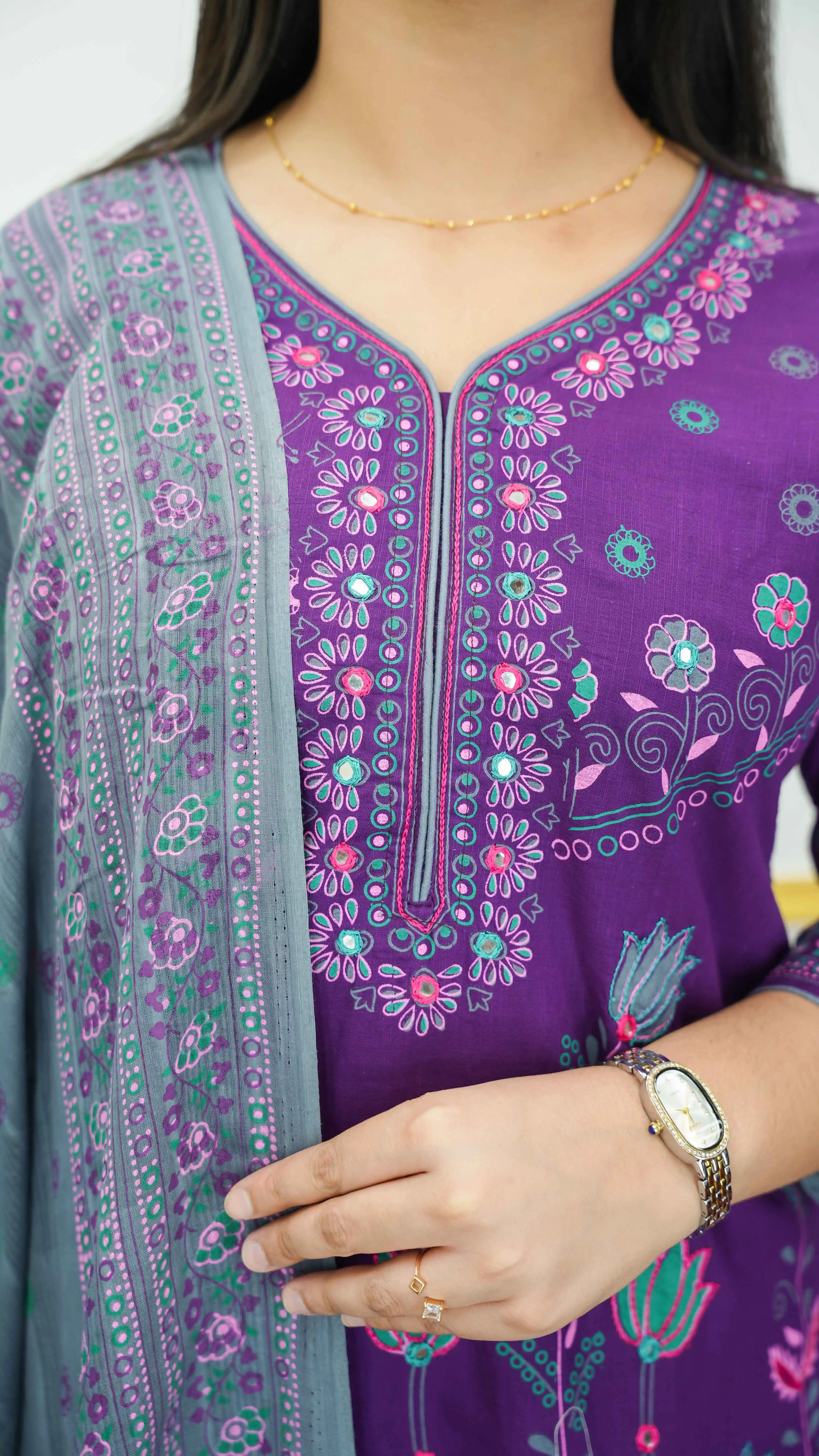 Ready Three Piece Cotton Suit featuring beautiful floral and traditional motif prints. Crafted from premium luxury cotton fabric, this complete ensemble delivers exceptional comfort and sophisticated style, perfect for everyday wear, festive celebrations, or special gatherings.