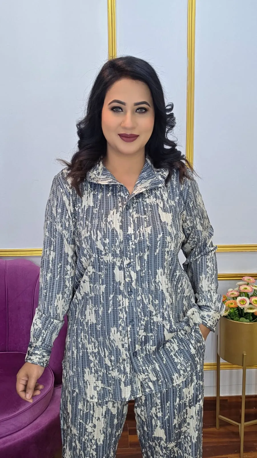 Elevate your daily wardrobe with our Premium Co‑ords Set, crafted from Imported Popbil fabric for a smooth, stylish finish. Designed with a shirt collar, open button front, full sleeves, and pants with two pockets, this set offers the perfect blend of comfort and elegance for everyday wear or casual outings.