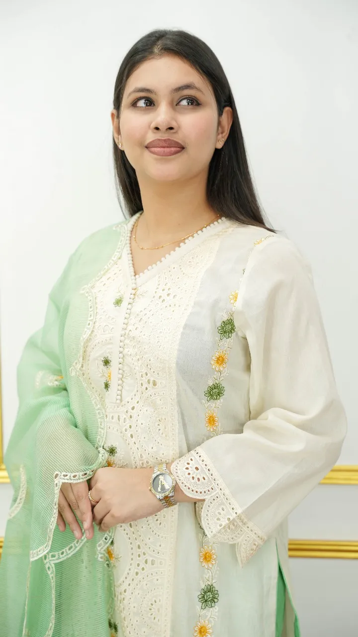 Experience timeless elegance with this Premium Cotton Unstitched Three Piece set, beautifully crafted with delicate ChickenKurry and detailed embroidery work. The luxurious Quota Maslin Orna adds a refined, graceful touch—perfect for any festive, casual, or everyday wear.