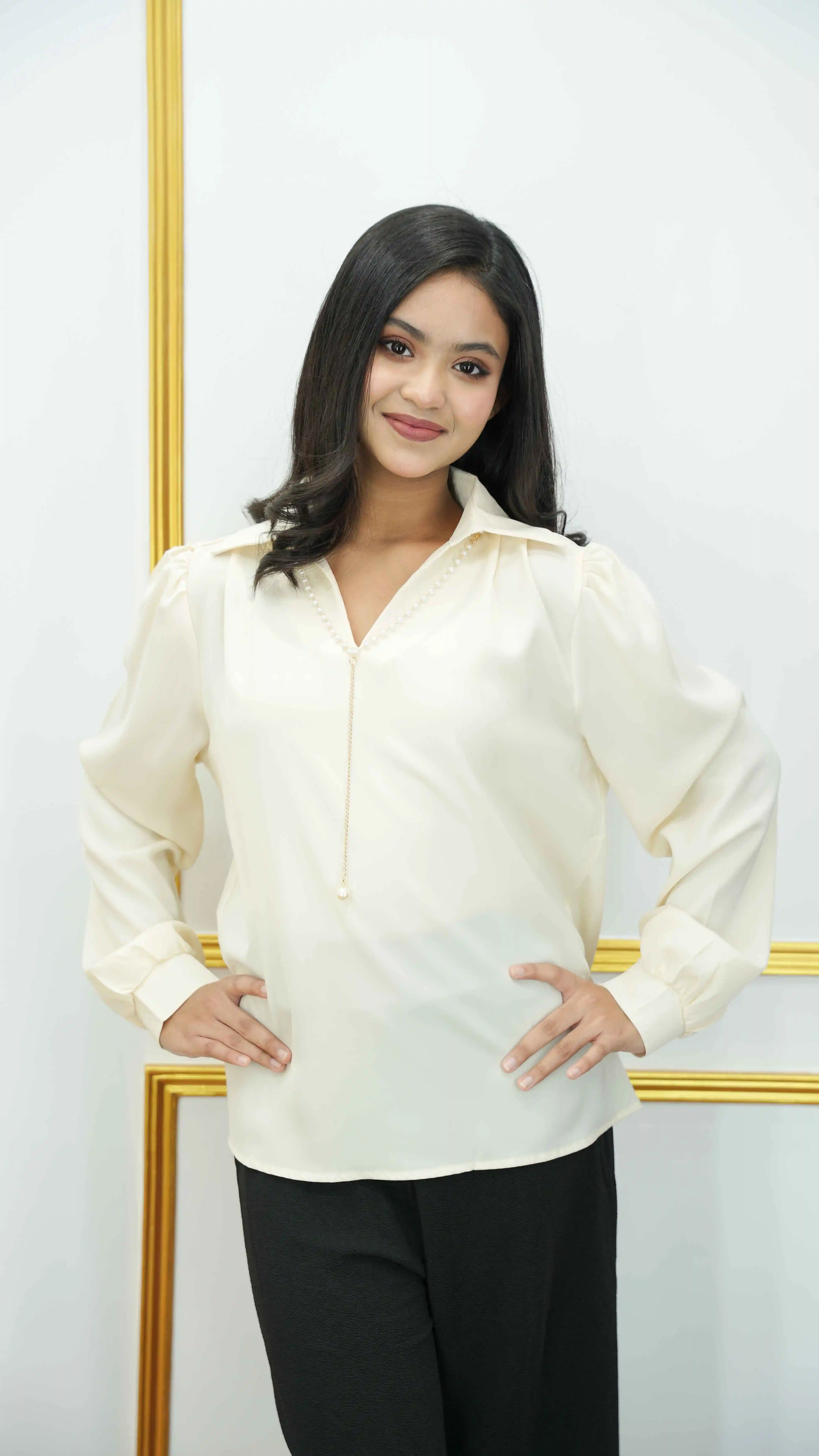 Elegant Thai Imported Tops - V-Neck with Chain Fre...